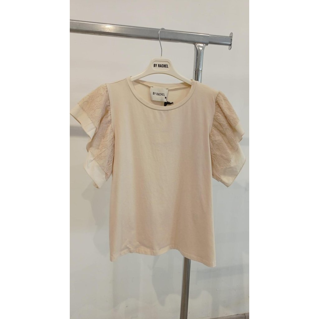 By R*achel - Lace Short Sleeve Tee - Beige / White