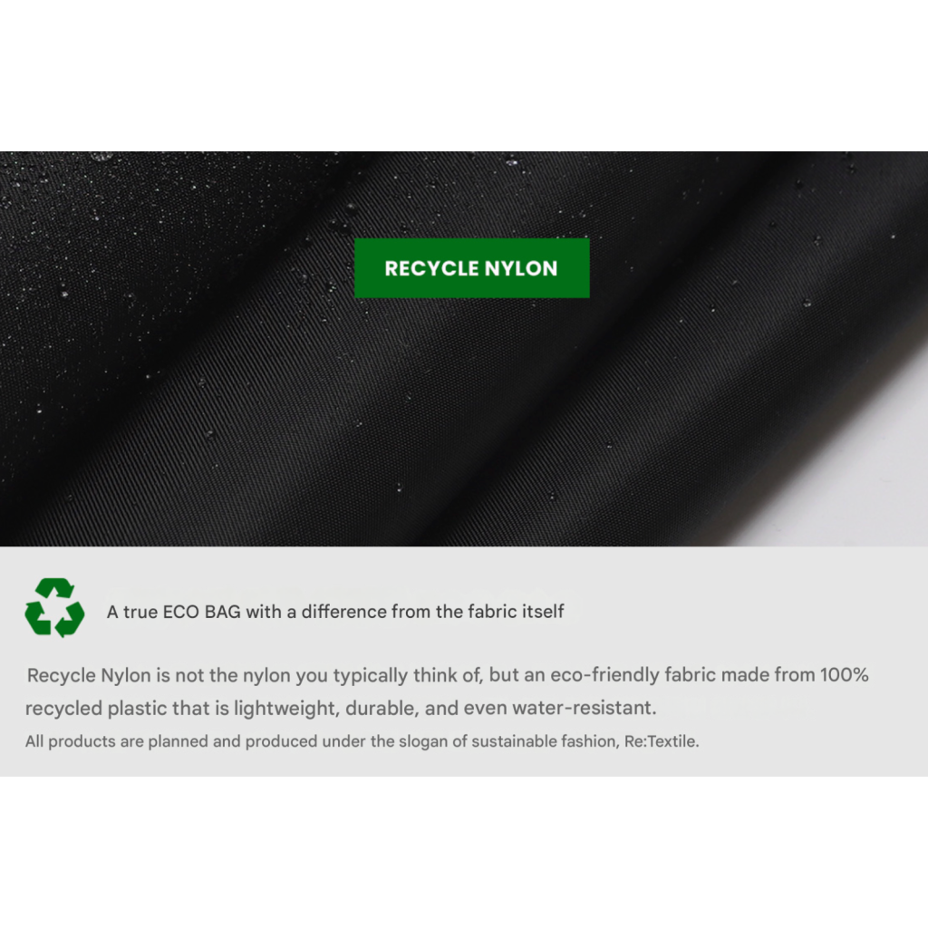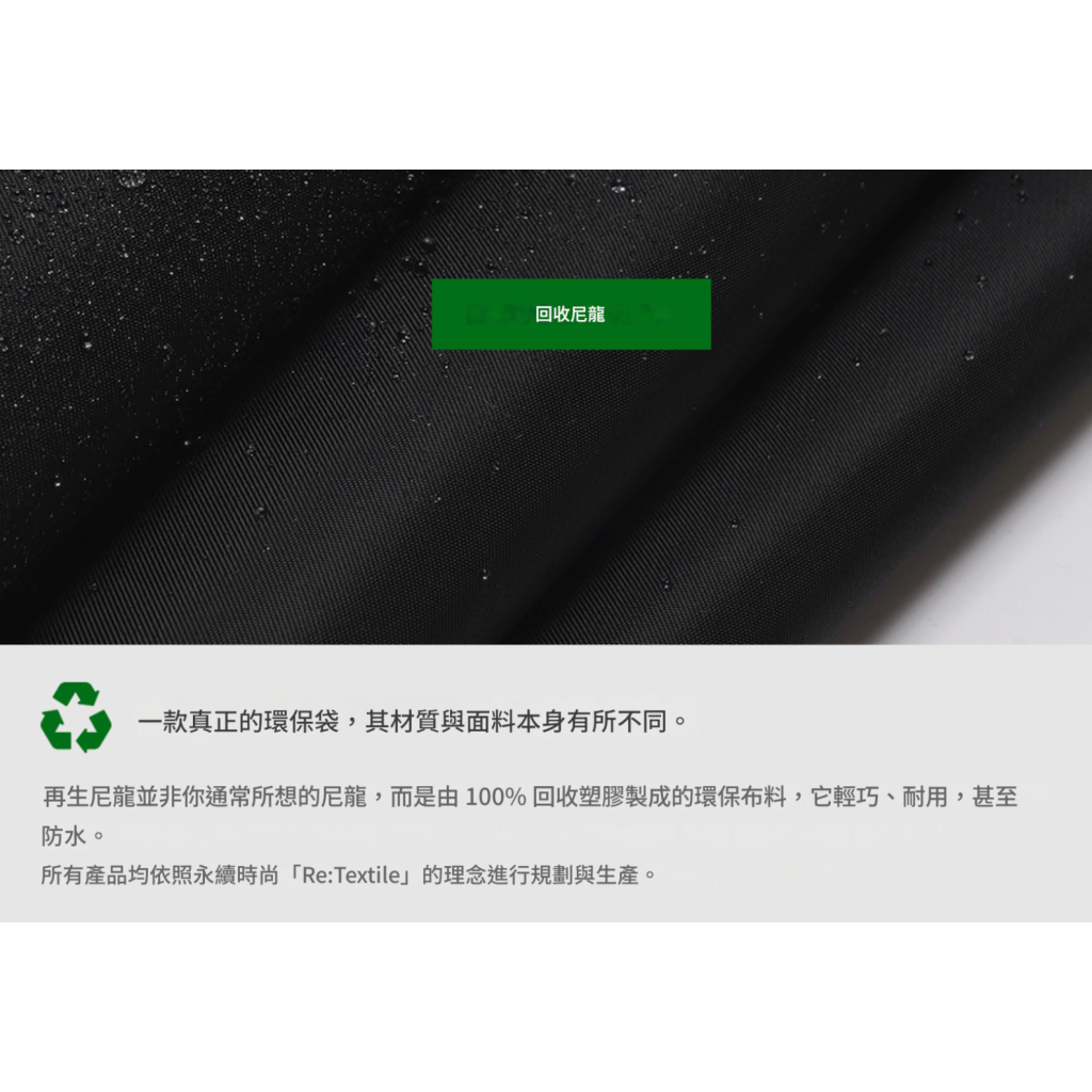 它採用由回收塑膠瓶製成的再生尼龍布料製成。